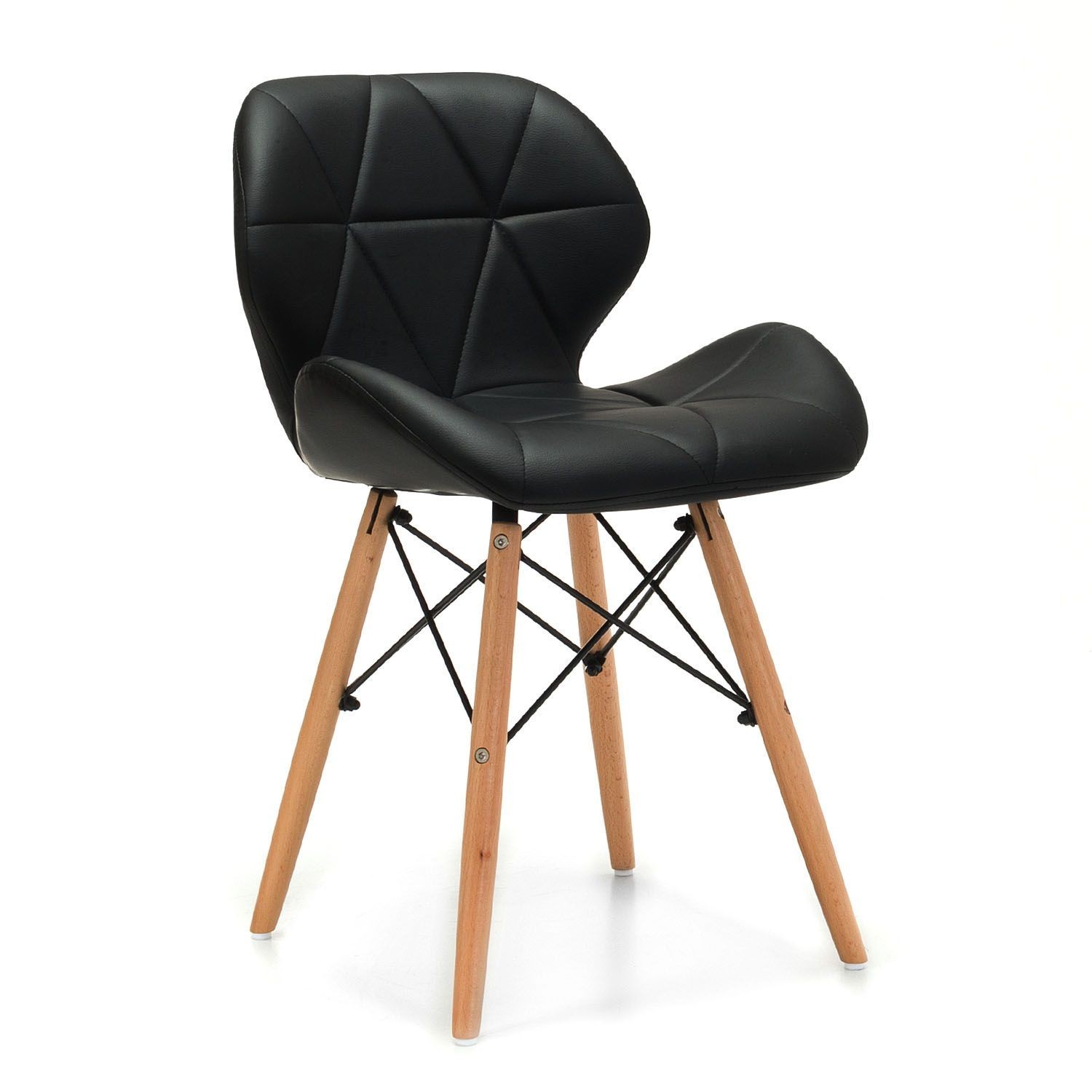 Silla de diseño, multiusos, base de madera, tapizada en similpiel negra. Otros colores disponibles.