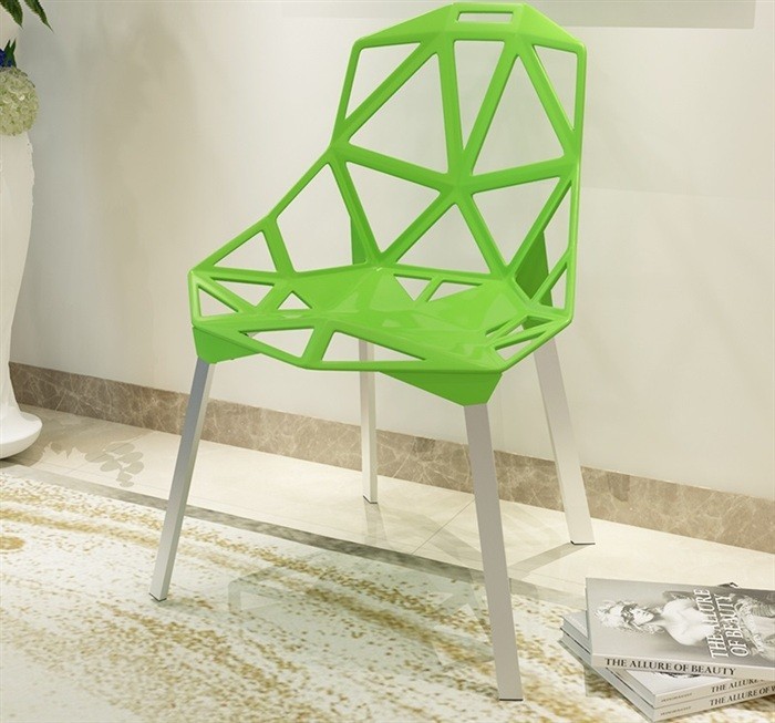 -Silla, monoblock de polipropileno de color verde.