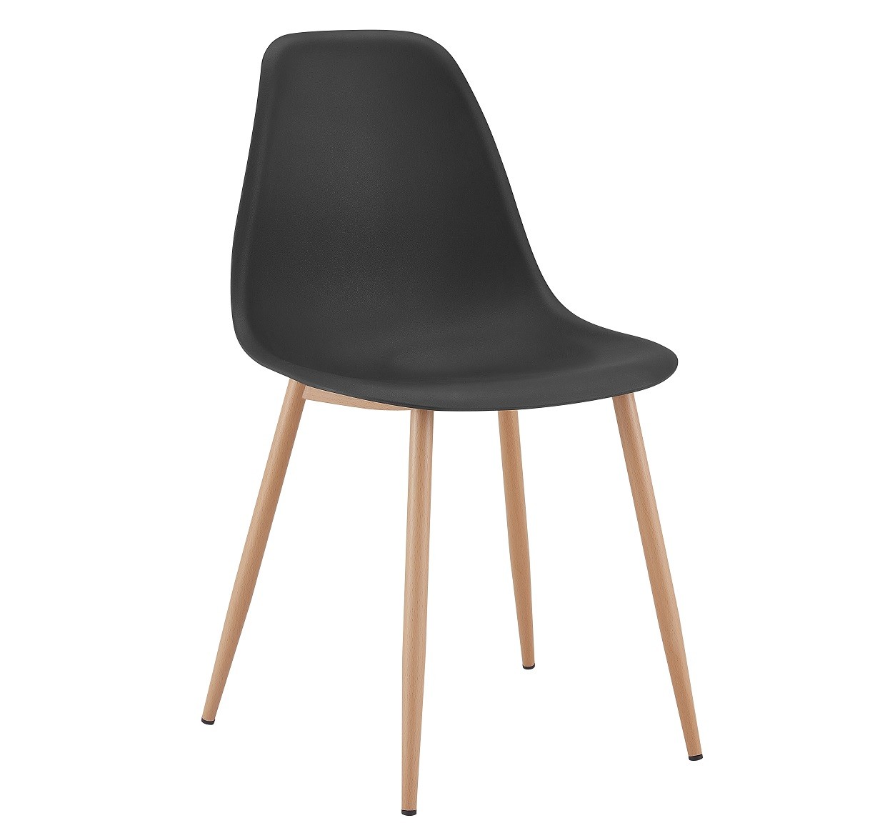 -Base de metal con acabado imitación madera, asiento y respaldo de polipropileno inyectado en color negro.