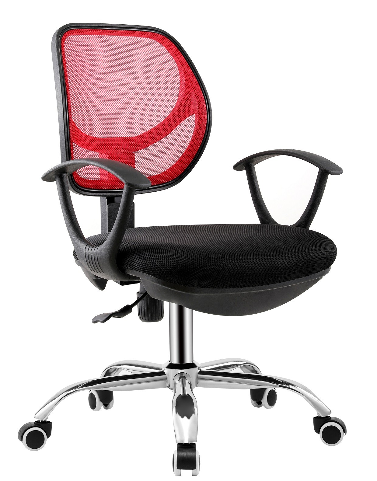 -Tapizado de malla roja en el respaldo y tejido negro en el asiento