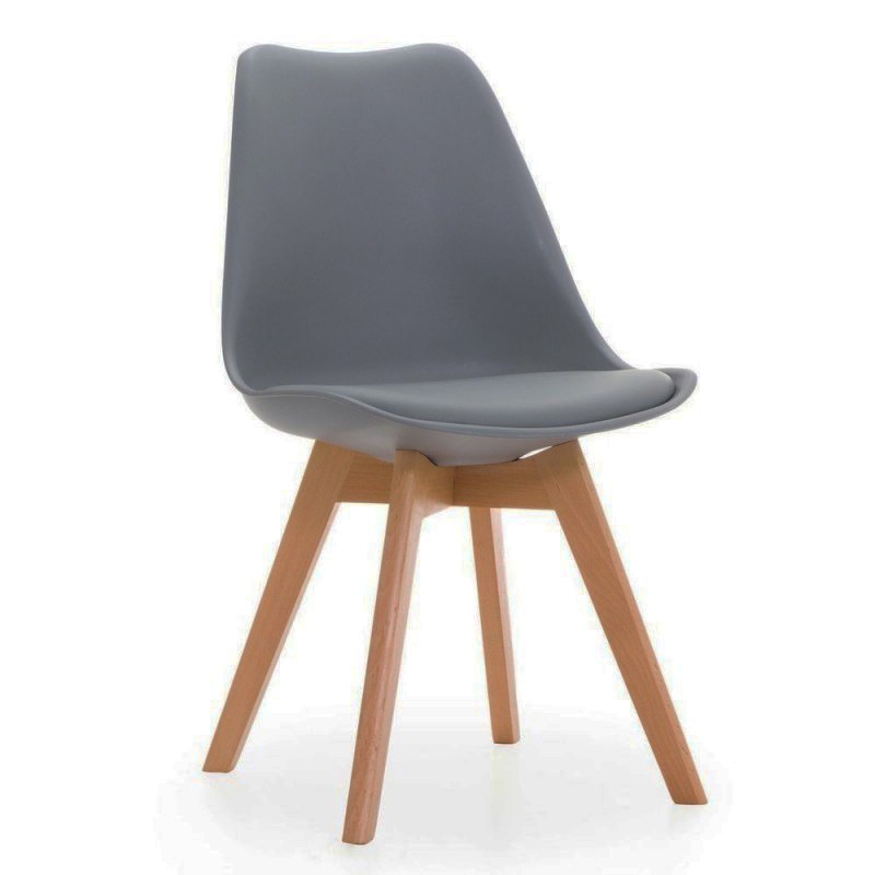Silla de diseño, madera de haya, carcasa de polipropileno gris oscuro, cojín de asiento en similpiel gris oscuro. Otros colores disponibles.