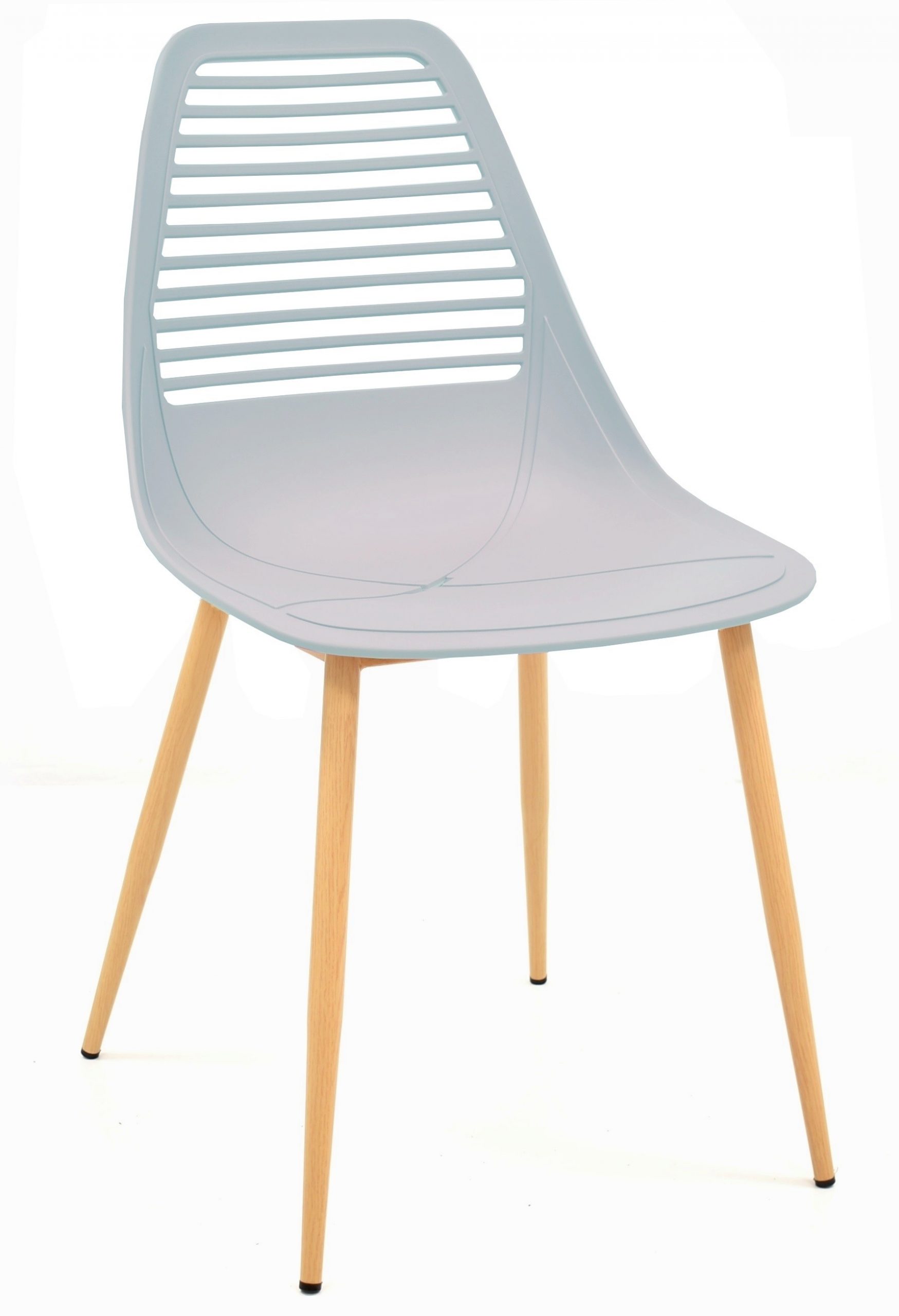 -Base de metal con acabado imitación madera, asiento y respaldo de polipropileno inyectado en color blanco.
