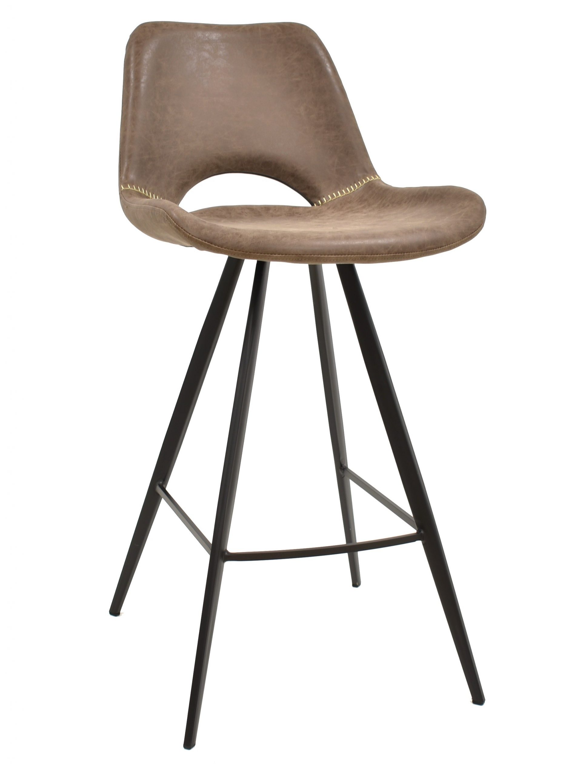 Taburete de diseño, armazón metálico pintado en negro, asiento tapizado en similpiel vintage marrón oscuro. Uso en interiores. Otros colores disponibles. Silla a juego